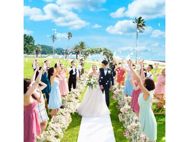 結婚式だけでなく前日から翌日まで余韻に浸りゆっくりとハネムーンのような贅沢滞在を満喫。全室オーシャンビューで移りゆく美しい景色を一日中堪能できる。更に挙式料やお料理UPグレードなど170万円ご優待