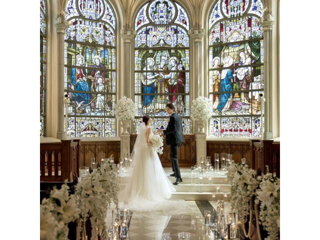 【130年の歴史あるステンドグラス】カサブランカの香り広がる大聖堂でパイプオルガンと聖歌隊の歌声に包まれて。大切な方に感謝を伝える感動挙式を体験!※時間帯により大聖堂の見学のみの場合もございます