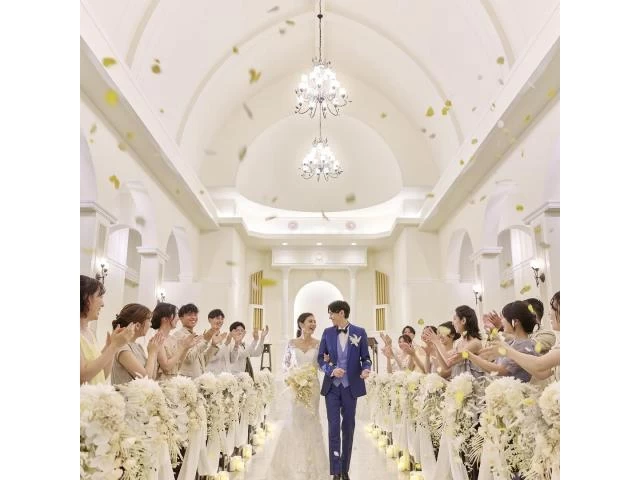 【大人気イベント】白亜の大聖堂で感動挙式を体感!宮崎で唯一「天使の羽根」が舞い降りるチャペル。バイオリン・聖歌隊の生演奏とゲスト全員に見守られるチャペルが笑顔あふれるセレモニーを演出※最大着席数80名