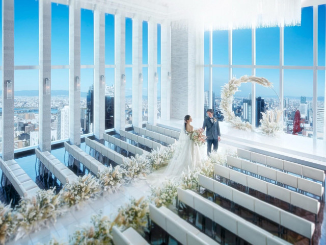 グランドリニューアル【来館者全員◆食事券1万円進呈】大阪駅徒歩30秒!地上150mの絶景×天空チャペル体験◆シェフ特製の豪華4万コースが無料試食!お仕事終わりにも参加OK!上質ナイトウエディングを体験しよう