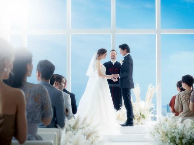 最上階28階、地上150Mからの絶景を望む天空チャペルでの挙式料をプレゼント! ※当館のフェアに初参加のカップル様限定