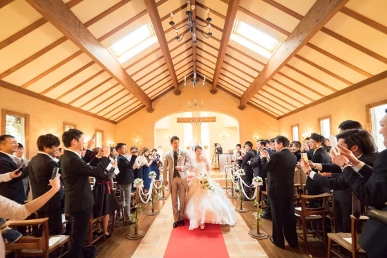 天窓から自然光が降りそそぐ、木の温もりに溢れるチャペルでの本格挙式は、本物志向のふたりにぴったり。イタリアの片田舎にある教会をコンセプトに造られた独立型チャペルでは、聖歌隊やフルート奏者・オルガン奏者の生演奏が雰囲気を盛り上げてくれます。