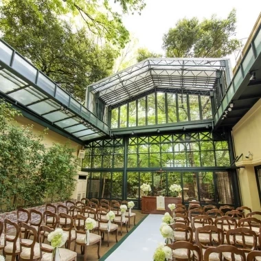 豊かな緑と光が差し込むガーデンチャペルは、全天候型で空調完備。季節や天候に左右されない会場で、まるでリゾートに訪れたようなリラックスした気分で挙式が行えます。