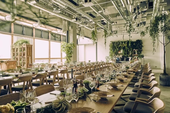 会場は、シックで大人な雰囲気のインテリアが魅力。薪で焼き上げる、特製グリラーで厳選された肉料理を堪能できるので、料理重視の方にも◎です!