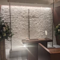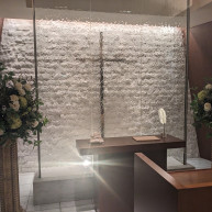 挙式会場のメイン舞台裏には壁から水が流れており、バージンロードが大理石で出来ているため、バージンロード手前から見ると水の流れが綺麗に映り、自身がその場にいて反社した姿が見えると思うと…と考えるだけでワクワクする。詳細を見る (396文字)