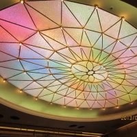披露宴会場は壁や柱などのところどころに金色を配して非常に重厚感がある雰囲気でした。テーブルやカーペット、装飾品には紫色や紅色を組み合わせており華麗で優雅な雰囲気でした。詳細を見る (374文字)