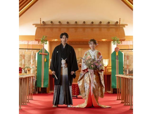 古式ゆかしい荘厳な雰囲気の本格神殿が館内に併設。総檜造りの優しい薫りに抱かれて日本らしい伝統の神前挙式を執り行う事が可能♪白無垢・色打掛での前撮りスポットとしても好評の神殿です!