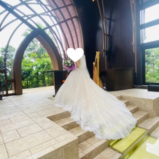 ホテルの庭園にある独立型チャペルで、天井が高く陽の光が差し込み、海外リゾート婚のような雰囲気で挙式ができます。ドッグウェディングが可能で、当日の朝わんちゃんをドッグエスコートに預け、リングドックのタイミングでチャペル内を歩いてもらうことが可能です。チャペルの外にはわんちゃんを出すことができないので、一緒に記念撮影をする場合は会場内のみとなります。チャペルのすぐ横にあるジョージアンテラスは、ホテルとは別邸の貸切型の披露宴会場となっており、入り口〜ウェルカムスペース〜トイレ〜会場の動線まで他の挙式のゲストと会うことなく参列してもらえます。お色直しもアリアンナ専用のブライズルームがあり、邸宅内での着替えが可能です。ムービーは高砂の上に大きく投影されるので、会場のどの位置からも見やすく、入場時は電音エンジニアリングさんの演出で、プロジェクションマッピングの投影も可能です。53名のゲストで9テーブルを配置しましたが、歩くスペースのゆとりもあってちょうどいいくらいの広さでした。・写真&アルバムのプランを一つ上げた(枚数を400枚に増やした)・装花の金額が最初の見積もりからは少しだけ上がった(メインで10万、ゲストで1テーブル1万はかけた方が良いとの提案)・ゲストテーブルのキャンドル設置(1テーブル2千円)▽無料持ち込みしたもの・ブーケとブートニア・結婚証明書・ヘアアクセサリーやイヤリング・プチギフト▽グランドウェディングフェアでの特典・サイドテーブル無料・レインボーシャワー10%引き・二次会予約でモエシャンプレゼント舞浜駅から無料シャトルバスが出ていますが本数が20分に一本のため、事前にゲストに時刻表を共有して余裕を持って挙式に間に合う時間に来てもらいました。ディズニーリゾートラインでも駅から一番近いホテルなので、オフィシャルホテルの中でもアクセスは良い方だと思います。打ち合わせが各業者(ドレス・音響&映像・装花・引き出物・全体のプランニング・二次会)とそれぞれ進んでいく形なので、合計で10回以上ホテルに通いました。まとめて打ち合わせを入れることも可能ですが、自分たちは家からのアクセスもよかったので毎回ディズニーの雰囲気にワクワクしながら通っていました!どのブースでも私達のやりたいことに寄り添ってヒアリングをしていただき、イレギュラーな相談に対しても融通を利かせながら実現可能な提案をしていただけたため大変感謝しております。・ドックウェディング可能なチャペル・犬と一緒に泊まれるドッグラバーズホテル・ディズニーオフィシャルホテルのため、ディズニーの音楽や席次表などが選べる・二次会もホテルの披露宴会場を借りて実施できる(ドレスも延長が90%オフで可能)・全ての打ち合わせが同じホテル内でできるやりたいことは企画段階で早めにプランナーさんに確認・相談すると良いと思います!詳細を見る (1196文字)