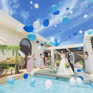 | おすすめ ポイント | 独立型チャペルには、指輪交換など、2人の表情を映し出すチェペル・シアター完備。チェペル前のプールで行うバルーンドロップ&フライで幸せを大空に♪ |
