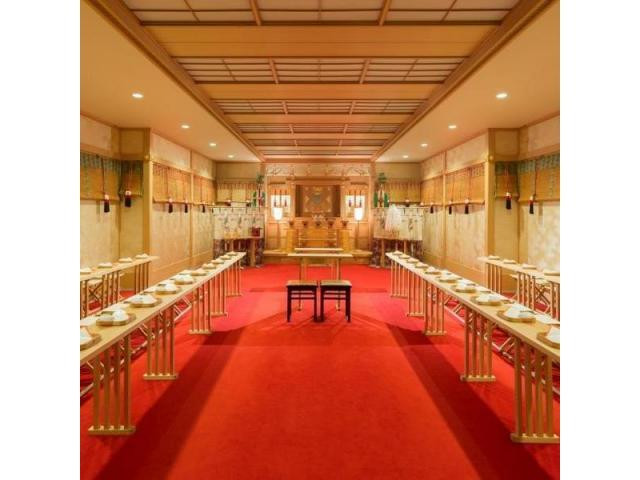 【ホテル内神殿又は伊勢山皇大神宮での挙式をご提案】出雲大社の御霊を祭るホテル内神殿は和婚をご希望のおふたりにピッタリ!雅楽の生演奏と共に伝統的な挙式が叶います。”伊勢山皇大神宮”の専用プランもご用意!