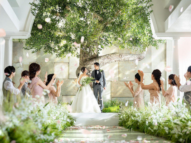 シンボルツリーの下、陽光注ぐ中で誓うあたたかな挙式が話題の新チャペル『LIFE TREE』- 今月中にご来館いただいたおふたりに、挙式料11万円分を特別プレゼント*