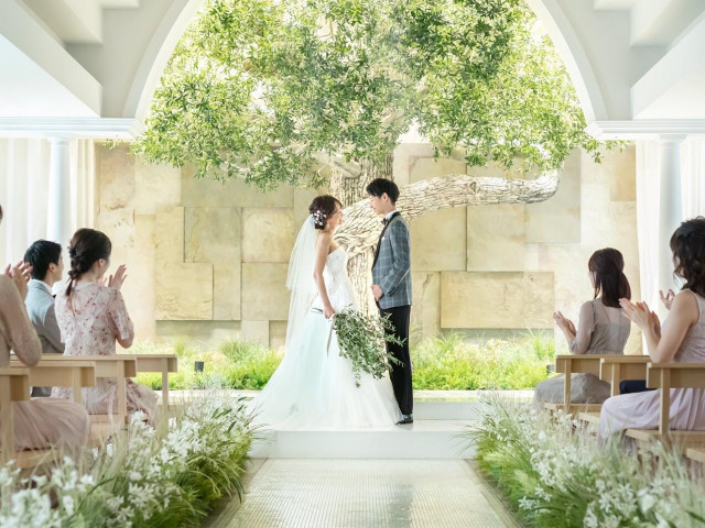 シンボルツリーの下、陽光注ぐ中で誓うあたたかな挙式が話題の新チャペル『LIFE TREE』- 今月中にご来館いただいたおふたりに、挙式料11万円分を特別プレゼント*