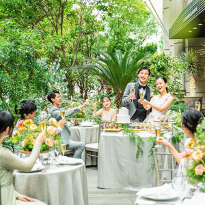 大きな木のあるチャペルが特徴的です。楽器の生演奏もありました。人前式でオリジナルの誓いの言葉を考えて自分たちらしい挙式ができました。カフェっぽい入口でウェルカムスペースの飾り方をお任せしましたがとても素敵に飾っていただきました。エスコートカードを用意しましたが、大きめの木に紐をつるして設置していただきとてもおしゃれでした。会場内は緑がいっぱいでナチュラルな雰囲気でよかったです。自分たちでコースの内容を決められます。いろいろな挙式場でご飯をいただきましたが今までで一番美味しかったです。日本大通り駅の出口からすぐに建物が見えてわかりやすいです。関内駅からも歩けますがそちらは少し距離があります。思ったより金額が膨らんでしまいましたが少しでも抑えられるよう親身にご相談にのってくださいました。子連れ婚でしたがスタッフのみなさまが子供と遊んでくれたりしてとてもありがたかったです。他にもたくさんお気遣いいただきとても素晴らしいスタッフさんが多く本当によかったです。全体的に素晴らしかったです。ナチュラルでアットホームなオリジナルの結婚式を挙げたい方にはぴったりかと思います。会場の雰囲気が決め手でした。ドレスの試着は早めに始めた方が良いかと思います。割とギリギリで試着を始めたのですがなかなかピンと来るドレスに出会えず、またドレスの担当者が最初から最後まで同じ人なので予約が大変取りづらく少し焦りました。ドレスの持ち込み料はかからないので(その代わり美容関係への割引プレゼントが適用外になります)、提携外のドレスショップも興味がある場合は早めに見始めた方が良いです。詳細を見る (682文字)