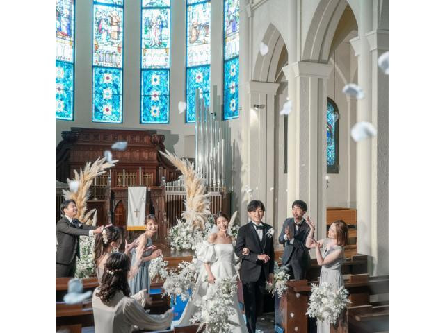 | おすすめ ポイント | 天井高20メートルを誇る本格大聖堂。ゆっくりと舞い降りる天使の羽根と、感動的な生演奏。オリジナル演出も多数。厳かな挙式がより幻想的になり、極上の感動セレモニーが叶う。 |