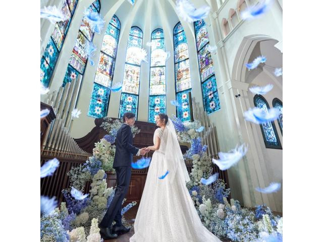 おすすめ ポイント | 天井高20メートルを誇る本格大聖堂。ゆっくりと舞い降りる天使の羽根と、感動的な生演奏。オリジナル演出も多数。厳かな挙式がより幻想的になり、極上の感動セレモニーが叶う。 |