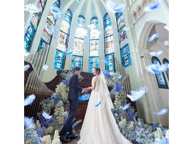 | おすすめ ポイント | 天井高20メートルを誇る本格大聖堂。ゆっくりと舞い降りる天使の羽根と、感動的な生演奏。オリジナル演出も多数。厳かな挙式がより幻想的になり、極上の感動セレモニーが叶う。 |