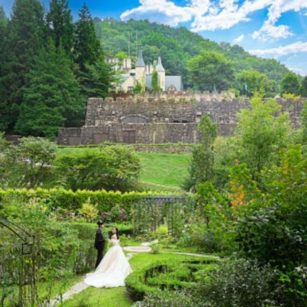 | ガーデン演出 | 有り爽やかな高原の雰囲気を味わえるラウンジガーデン。ウエディング専用プライベート空間なので自由で開放的な一時を楽しめます。ガーデン挙式可能 |