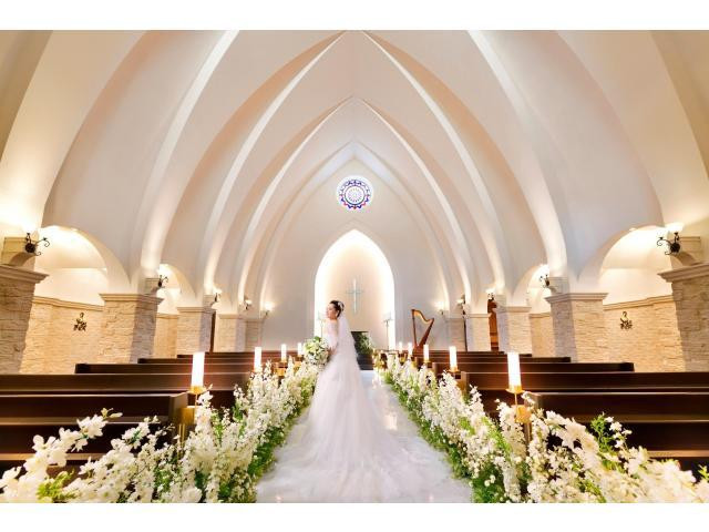 | おすすめ ポイント | 大聖堂と呼ぶにふさわしいアーチを描くチャペル。グランドハープとパイプオルガンの美しい旋律、ソリストの歌声、そして外国人牧師が、おふたりの緊張を解くように迎え入れる。祝福のフラワーシャワーも嬉しい。 |