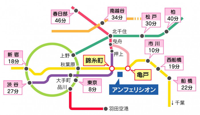 | アクセス | JR総武線・東京メトロ半蔵門線 錦糸町駅 徒歩10分 JR総武線・東武亀戸線 亀戸駅北口 徒歩5分 |