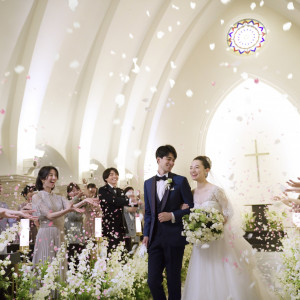 | おすすめ ポイント | 大聖堂と呼ぶにふさわしいアーチを描くチャペル。グランドハープとパイプオルガンの美しい旋律、ソリストの歌声、そして外国人牧師が、おふたりの緊張を解くように迎え入れる。祝福のフラワーシャワーも嬉しい。 |