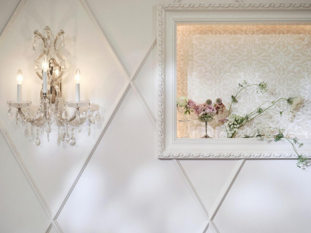 ワンフロアに1バンケットだから、前室もおふたりの写真を飾ったり、想い出のアイテムを展示してゲストにも楽しんでもらえるスペースとして貸切感覚で利用できる。