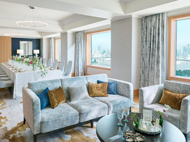 28階ロイヤルスイートルームを見学。レインボーブリッジや東京タワーが一望できる絶景をお楽しみください♪※当日の状況によりご見学いただけない場合もございます