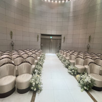 挙式会場は好みの木目やステンドグラス調の会場ではありませんでしたが、光の演出があったり元から装花が施されていたりと、洗練された雰囲気の中にも華やかさを感じました。