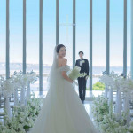 【琵琶湖を望の感動挙式が叶うチャペル】湖と空の青に囲まれたチャペル。開放的な空間で大切な時間をお過ごしください