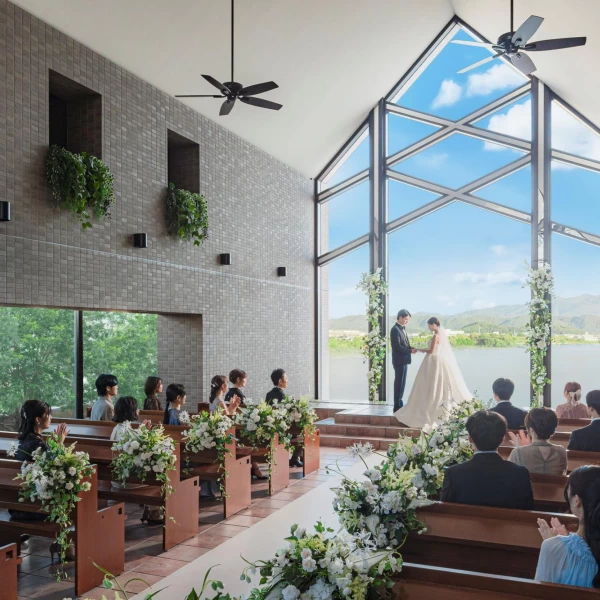 このプランに含まれるもの 挙式料 ○ 料理 - 飲み物 - ケーキ - 控え室料 ○ 席料 - 介添料 - 美容着付 ○ 新婦衣裳 ○ 新郎衣裳 ○ 引出物 - 写真 ○ 印刷物 - 装花 ○ 音響・照明 - サービス料 ○ その他 詳細はスタッフまでお問合せくださいませ。 備考琵琶湖の絶景が広がるチャペルで一生に残る挙式&家族だけでの会食もご案内可能。特別な一日を思い出に残る結婚式をお手伝いいたします。