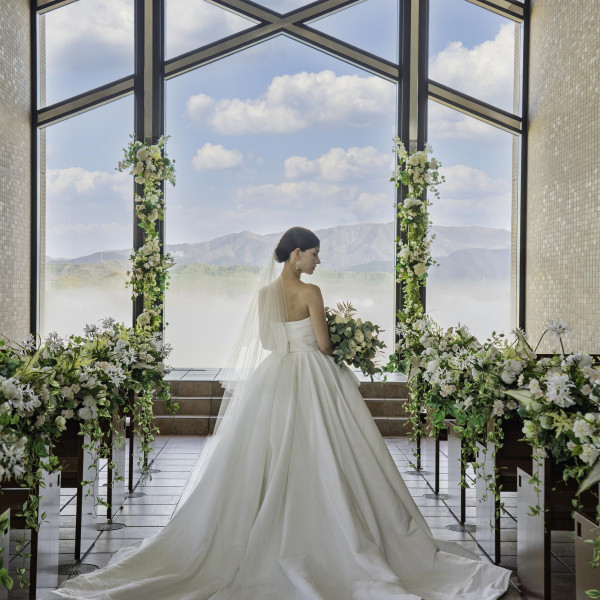 <NEWチャペル見学スタート!挙式料全額OFF>憧れドレス試着*湖×青空×光の絶景チャペルで模擬挙式!270度のパノラマビューを独占◇スイートルームで贅沢に過ごすリゾートウェディングが叶う≪豪華特典付≫