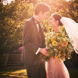 | ガーデン演出 | 有り挙式と披露宴の間に行うガーデンでのウエルカムパーティ 大勢のゲストを招待しても、この時間があれば一人ひとりと言葉を交わすことができるため、披露宴では料理やサービスを楽しめる |