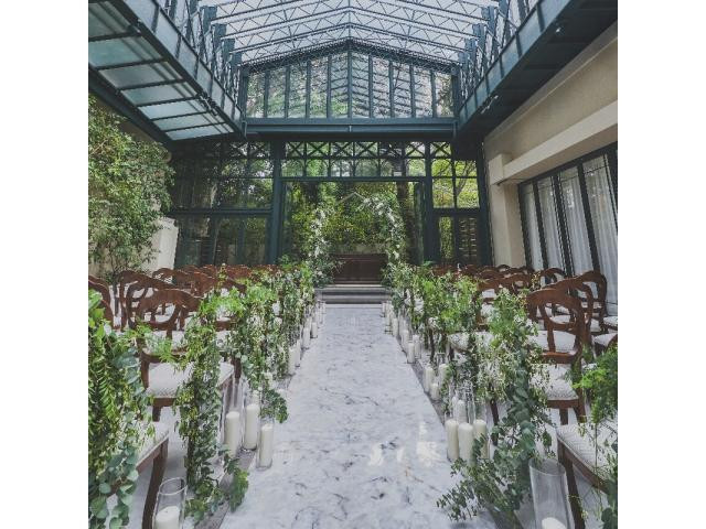 緑と光が差し込む邸宅レストラン。開放感溢れる全天候型ガーデンチャペルとゲストの目の前で仕上げる人気の料理演出を体験できるおすすめフェアです。レストランならではのお料理とおもてなしをご体感ください!
