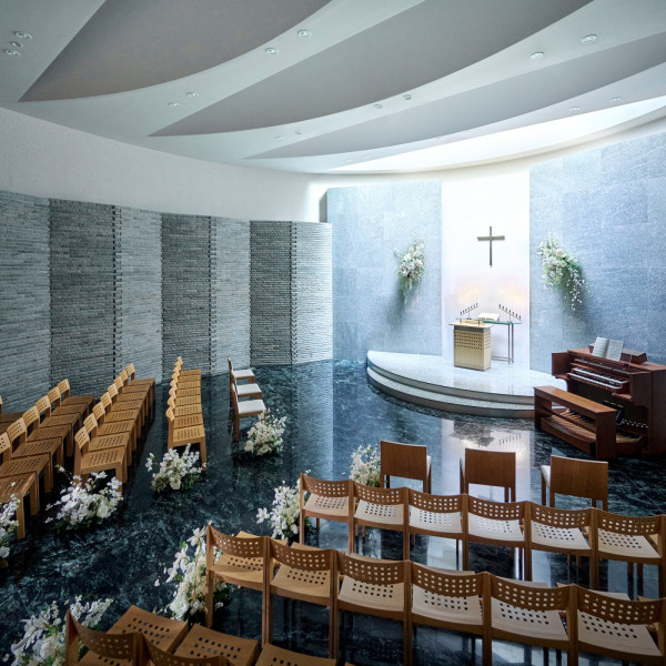セルリアンタワーチャーチは礼拝を行う本物の教会。専任の牧師が一組ごとに心を寄せる挙式は、記憶に残る、特別な時間。円を描いたチャーチで家族を深い絆で結んでくれる。