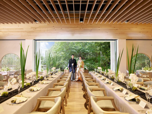 【美しい日本庭園を背景に挙式体験】都会とは思えない緑に囲まれた庭園と自然光をに包まれる新しい挙式スタイル!和装も洋装も映える空間はおふたりのこだわりを叶えられます◎