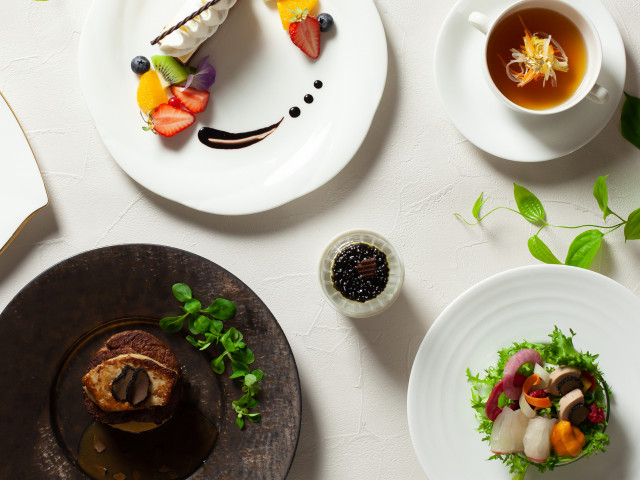 フレンチベースのこだわり創作料理の中からゲストも期待する2名33000円コースの前菜、スープ、和牛サーロイン、デザートを無料でご試食いただけます。ベルセゾンではお箸でいただける和洋創作料理または中国料理の美食コースでのおもてなしが叶います。