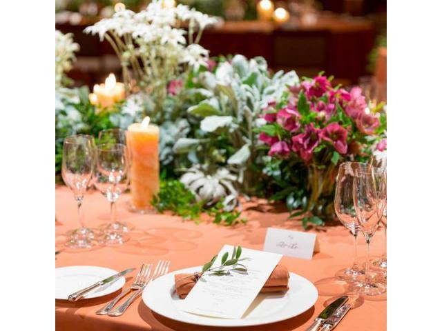ホテルのインテリア同様、バンケットルームもすべてに本物が息づく空間。一歩足を踏み入れると、華やかでラグジュアリーな気分になる会場に合わせて、唯一無二のテーブルコーディネートを展示しております。