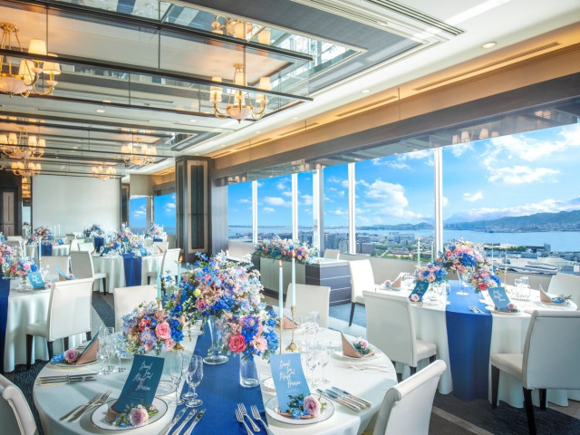 【こだわりとおもてなしが叶う2つの会場】ワンフロアで移動の負担が少ないガーデンサイドの会場と、目の前に広がる神戸の海と山の景色でおもてなしが叶う会場の2つをご用意!ホテルならではのサービスも体験して♪