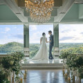 自然光がたっぷりと入る大きな窓からは、浜名湖の雄大な水平線と青空が一望できます。目の前に広がる景色に、ゲストからの祝福が加わりまさに贅沢な空間。優雅なロケーションを活かした演出も可能!