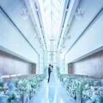 クリスタルのシャンデリアが無垢で優美な誓いの瞬間を演出します