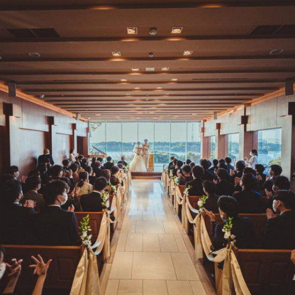 湖を望む開放感と、自然光あふれる空間。浜松で唯一、湖畔のチャペルで誓う特別な一日を無料で。