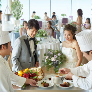 チャペルの空間が程よく広く、色合いもよくとても心地よく感動しました。窓からの開放感がよく、照明の明るさが良くとても緑の雰囲気が良かったです!メニュー一つ一つ目や味で楽しめるような種類でよかったです。魚料理や肉料理の味わいがとてもおいしかったです。お寿司の演習などとても美味しかったです!箸などの食器類の交換も早かったので助かりました。駅から式場までの距離が近く、式場の緑の雰囲気や色合いがとてもよく感動しました。料理を渡してくれる方一人一人が丁寧にお渡ししてくれるので、とても親切でした。飲み物がなくなるとすぐに笑顔で声をかけてくださり、とても助かりました。スタッフの気配りがとても助かりました。美味しい料理や飲み物の説明もありとても良かったです!詳細を見る (324文字)