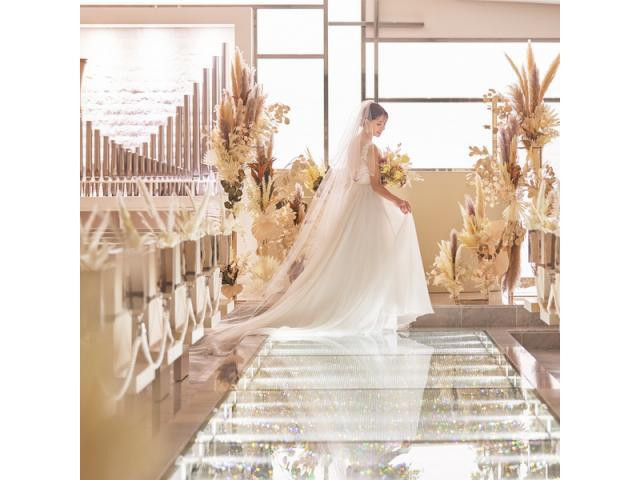 【選べる2つの挙式スペース】美しい20万粒のスワロフスキーが煌めくクリスタルチャペルと、自然を感じる檜の香り漂う和モダンな挙式空間からお好みに合わせてお選びください。華やかなアフターセレモニーも人気。
