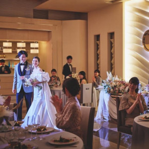 挙式会場のイメージとしては白を基調とした明るい印象でした。また、バージンロードがガラスばりになっており、その下にはキラキラと輝くデザインとなっていたため非常に華やかでした。愛犬にリングドックをさせることもできました。音楽は生演奏をしていただけ、歌も2-3名で対応いただきました。非常に音の聞こえもよかったことを覚えています。新婦側の話ですが、新婦は入場する前の両親と待機しているスペースで両親に感謝の気持ちを伝える動画を流す事ができました。新郎の登場は正面ではなく、後方の横側から入場する作りになっていました。ブラウンを基調とする会場で、かっこいい雰囲気でした。プランには入れませんでしたが、ライブ調理もできたようです。和食のコースにしましたが、参加者からは絶賛されました。新幹線最寄駅からシャトルバスがでており、アクセスはよかったと感じます。スタッフの方々は非常に良い方ばかりでした。一歳の息子の相手をしてくださったり、おむつ交換の部屋を貸してくださったりとたくさん配慮いただけ感謝しています。新幹線最寄駅からのアクセスがいい(シャトルバス)ペットも参加できる結婚式準備はどれだけやってもやり足りないと感じました。計画的にご準備することをまずはおすすめします。またそれぞれの両親の意向も定期的に聞いてあげるとスムーズに勧められます。すてきな結婚式になることを祈ってます。詳細を見る (586文字)