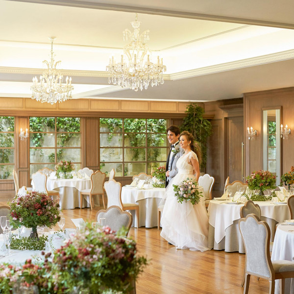 大切なご家族やご友人など、おふたりに近いゲストの方を招いてのパーティーに最適!大きな窓からの明るい陽光に包まれ、時間の流れとともに移ろいを感じる景色を贅沢にご堪能いただける♪