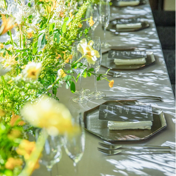 | ガーデン演出 | 有り森に囲まれたプライベートガーデンでは感動のアフターセレモニーを。最上階の会場はプライベートテラス付 |