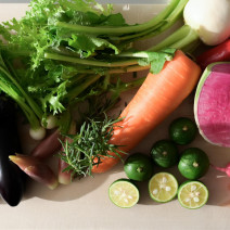 素材のこだわりは、和食は生の鮮魚を捕り立てで仕入れ。朝採れ野菜から