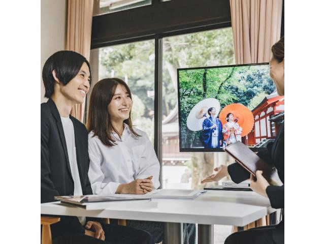 実際撮影したロケフォトの写真から映像をモニターでご紹介。当日のスケジュールから費用までお二人にピッタリのプランをご提案致します。