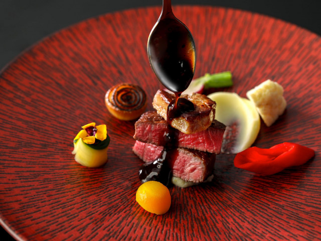 【五感を刺激する伝統的な日本料理×モダンフレンチ】評判の婚礼料理はお決まりのコース料理ではなくおふたりのゲストに合わせて1品ずつプリフィックスで選ぶ全7品のスタイル。フェアでは無料試食で4品ご試食