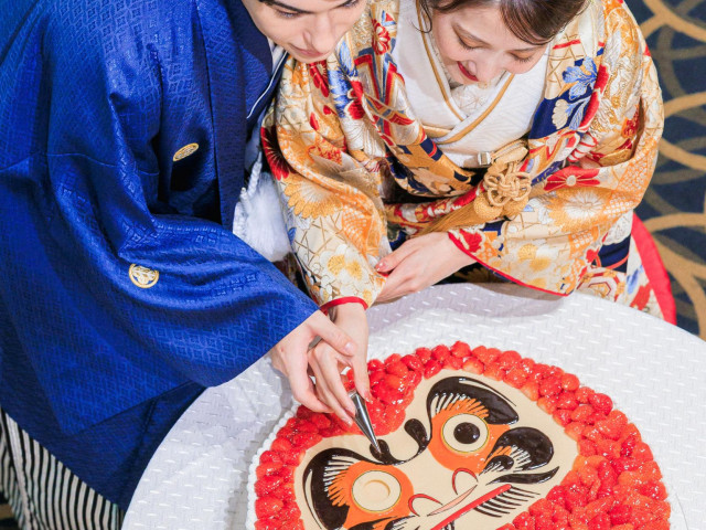 和心伝わるご両家での「初杵(祝い餅)」のアイテムから「だるまのケーキ」「水合わせの儀」など担当プランナーが案内