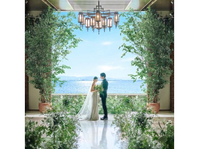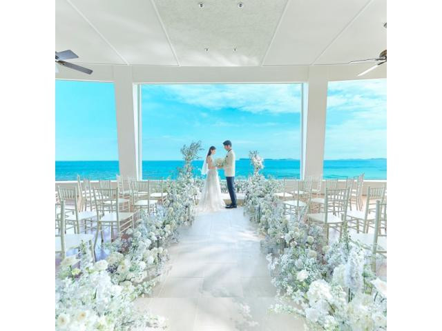結婚式だけでなく前日から翌日まで余韻に浸りゆっくりとハネムーンのような贅沢滞在を満喫。全室オーシャンビューで移りゆく美しい景色を一日中堪能できる。更に挙式料やお料理UPグレードなど190万ご優待!